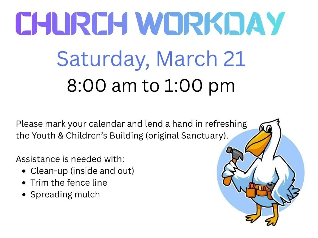 After Sun., 3/22 worship service, join us in writing Scripture verses on the floor of the main sanctuary before carpeting is installed. We will be honoring the Lord and literally standing on the Word of God! Markers will be provided, and assistance if needed, for writing your favorite Bible verse.